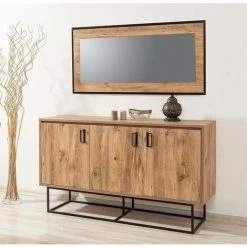 COTECOSY Buffet Bas 3 Portes Feneta 140cm Métal Noir Et Bois Naturel – Bois / Noir