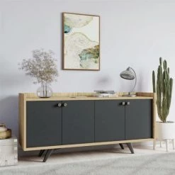 COTECOSY Buffet Bas Aledros 150cm Chêne Clair Et Anthracite – Bois / Gris