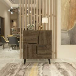 COTECOSY Buffet Bas 4 Portes Opal 70cm Noir Et Bois Foncé – Bois