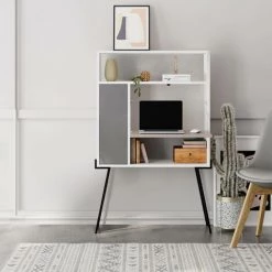 COTECOSY Buffet H135cm Transformable En Bureau Avec Tablette Tamir Moka Et Blanc – Blanc / Gris