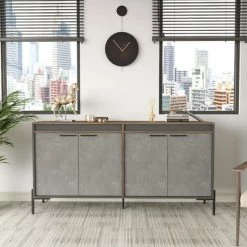 COTECOSY Buffet Style Industrielle Ournisse Métal Noir Et Bois Naturel Et Noir – Bois / Noir