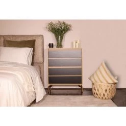 COTECOSY Buffet Haut Moderne 5 Tiroirs Et 1 Porte Nestor Taupe Clair Et Or – Taupe Clair