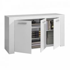 DANSMAMAISON Buffet 3 Portes Blanc – RUINUI – L 144 X L 42 X H 80 Cm – Blanc