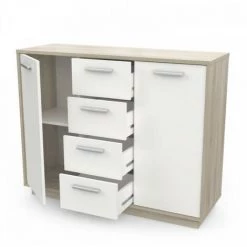 DANSMAMAISON Buffet 2 Portes 4 Tiroirs Chêne/Blanc – ANO – L 113 X L 37 X H 84 Cm – Bois Clair