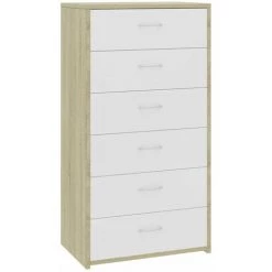 HAPPYSHOPPING Buffet A 6 Tiroirs Blanc Et Chene Sonoma 50x34x96 Cm Agglomere
