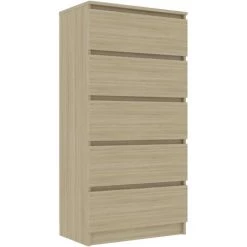 HAPPYSHOPPING Buffet A Tiroirs Chene Sonoma 60x35x121 Cm Agglomere