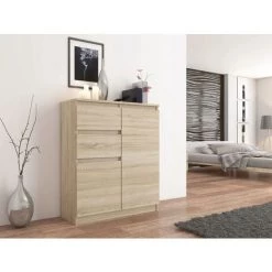 HUCOCO LERON – Buffet Style Rustique Salon/chambre à Coucher – 100x33x80 Cm – 2 Portes – Marron