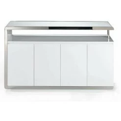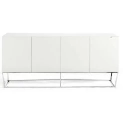 LES TENDANCES Buffet Design 4 Portes Bois Laqué Gris Et Acier Chromé Modena