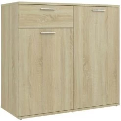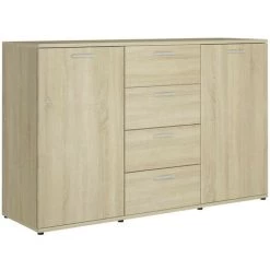 LES TENDANCES Buffet Design 4 Portes Bois Laqué Jaune Et Acier Chromé Modena