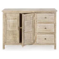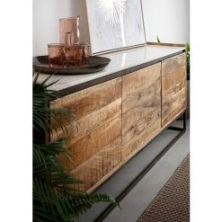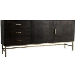 LES TENDANCES Buffet Design 4 Tiroirs Laqué Et Pieds Acier Chromé Romus – Couleur Brouillard