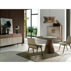 LES TENDANCES Bahut 3 Portes Bois Laqué Et Pieds Acier Chromé Drezia – Couleur Dessert