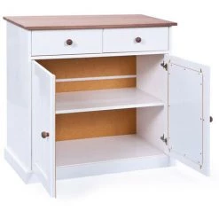 LES TENDANCES Commode 2 Portes Pin Massif Foncé Et Blanc Campanou 90 Cm
