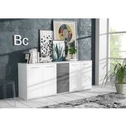 LES TENDANCES FINLANDEK Buffet Bas PILVI Contemporain Blanc Et Gris Mat – L 179 Cm