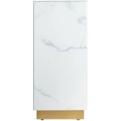 LES TENDANCES Meuble 1 Porte Art Déco Verre Cristal Teinté Blanc Marbré Et Acier Doré Kola 90 Cm