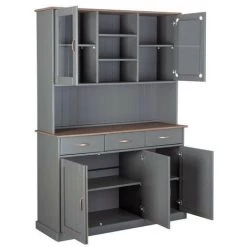 LES TENDANCES Vaisselier 5 Portes 3 Tiroirs Pin Massif Gris Luza