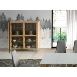 LES TENDANCES Bahut Haut 2 Portes Art Déco Cristal Blanc Et Acier Doré Katol 70 Cm
