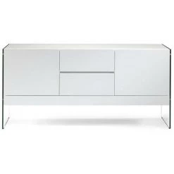 LES TENDANCES Buffet 2 Portes 2 Tiroirs Laqué Et Pieds Verre Trempé Lina – Couleur Blanc