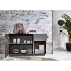 LES TENDANCES Buffet 2 Portes 1 Tiroir Laqué Gris Mat Telak 138 Cm
