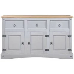 LES TENDANCES Buffet 3 Portes 3 Tiroirs Pin Massif Foncé Et Gris Luza