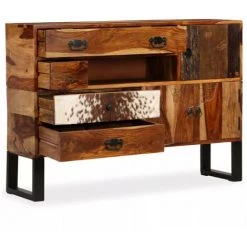 LES TENDANCES Buffet 3 Portes 3 Tiroirs Acacia Massif Foncé Noelie
