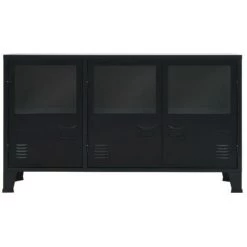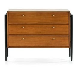 LES TENDANCES Buffet 3 Tiroirs Bois Massif Foncé Et Noir Vazen