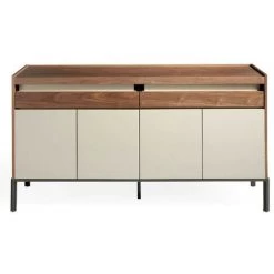 LES TENDANCES Buffet 4 Portes 2 Tiroirs Bois Noyer Et Laqué Muza – Couleur Dessert