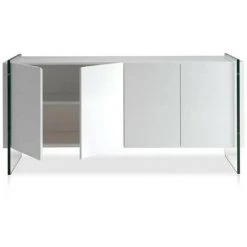 LES TENDANCES Buffet 4 Portes Bois Laqué Et Pieds Verre Trempé Lina – Couleur Blanc