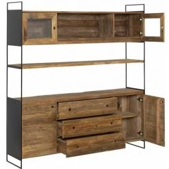 MADE IN MEUBLES Vaisselier En Bois Recyclé Blaise 190cm – Noir