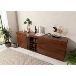 MASSIVMOEBEL24.DE Buffet 215×45 Manguier Laqué Brun AMSTERDAM #29 – Brun