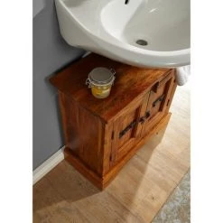 MASSIVMOEBEL24.DE Meuble Lavabo 66×30 Acacia Laqué Miel OXFORD #01007 – Brun