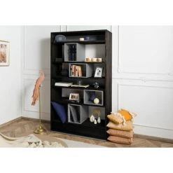 MASSIVMOEBEL24.DE Meuble Bar 75×35 Manguier Laqué Gris RAILWAY #241 – Gris