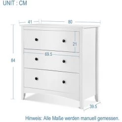 MERKMAK Buffet 80 X 41 X 84 Cm Placard Avec 3 Tiroirs Pour Salon Chambre Salle De Bain Blanc
