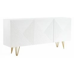 MILIBOO Buffet Design Blanc Et Doré 3 Portes L160 Cm OZEN – Blanc