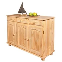 Paris Prix – Bahut 3 Portes Pin Massif « abaco » 130cm Naturel
