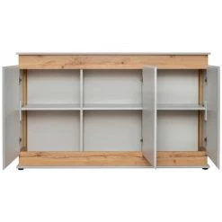 Paris Prix – Buffet 3 Portes & 3 Niveaux « silk » 120cm Gris & Naturel