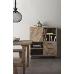 Commode Combinée Imitation Chêne Poutre Rechampis Raw Steel – L139 X H102 X P41 Cm -PEGANE-