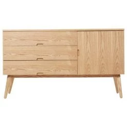 Buffet En MDF Et Pin, Avec 3 Tiroirs Et 1 Porte – Dim : L 150 X L 45 X H 85 Cm -PEGANE-