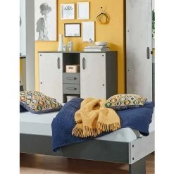 Buffet Meuble De Bar En Bois De Manguier Et Polyester Finition Velours Bleu -PEGANE-