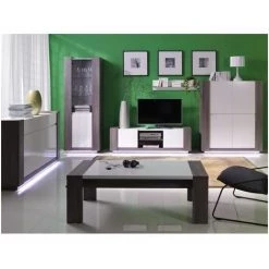 PRICE FACTORY Buffet AUGUSTO Moyen Modéle Coloris Gris Bodéga Et Blanc Brillant – Gris