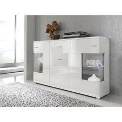 PRICE FACTORY Buffet Design LUCIA, 3 Portes Et 3 Tiroirs. Coloris Blanc Brillant Et Noir – Blanc