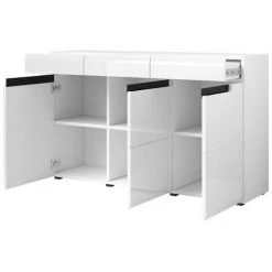PRICE FACTORY Buffet Design 160cm Collection SAGA. Coloris Noir Et Blanc. – Blanc