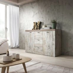 PRICE FACTORY Buffet Design 150cm Pour Salon Effet Pin Blanc Et Chêne Collection KEA. – Marron