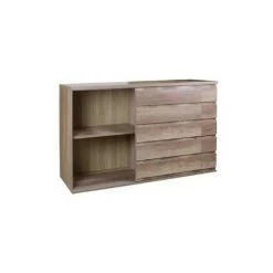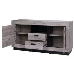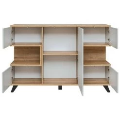 PRICE FACTORY Buffet XL150cm Collection OHIO. Éclairage LED Intégré. Coloris Blanc Et Chêne. – Blanc