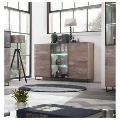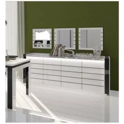 PRICE FACTORY Buffet, Bahut LINA Noir Et Blanc Avec LED – Noir