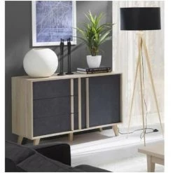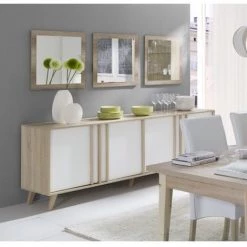 PRICE FACTORY Buffet, Enfilade, Bahut OSLO Moyen Modèle. Meuble Design Type SCANDINAVE. – Blanc