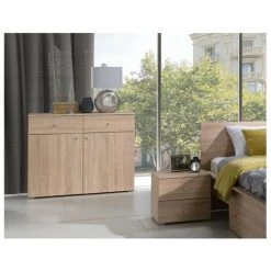 PRICE FACTORY Commode Chambre MAXIM. Coloris Chêne Clair. 2 Portes Et 2 Tiroirs. – Marron