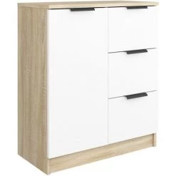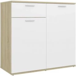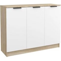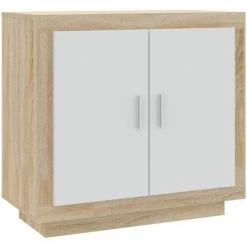 TRUE DEAL Buffet Blanc Et Chêne Sonoma 80x36x75 Cm Aggloméré
