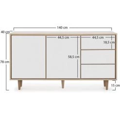 VS VENTA-STOCK Buffet Panama 4 Tiroirs, 2 Portes, Couleur Bois Et Gris, 136 Cm Largeur – BOIS