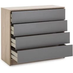 VS VENTA-STOCK Commode De Nuit Panama 4 Tiroirs, Couleur Bois Et Gris, 80 Cm Largeur – BOIS