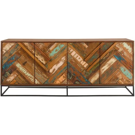 Buffet en bois d’acacia et bois recyclé 4 portes – Krabi –